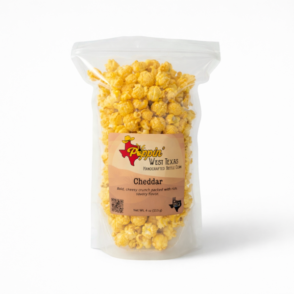 Big, bold, and cheesier than your uncle’s tall tales. Our Cheddar kettle corn is coated in rich, sharp cheese flavor that’ll rope you in from the very first bite.