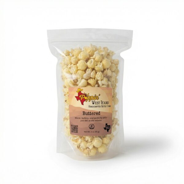 Just like sittin’ at the drive-in on a summer night. Big, fluffy kernels drenched in rich, golden butter—simple, salty, and downright Texan comfort in a bag.